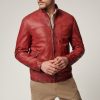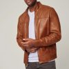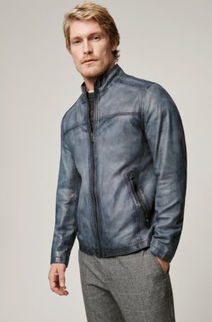 Lightweight and built for spring, the Lucio jacket is made from premium lambskin leather with a unique two-tone waxed finish. This sporty zip-front moto style is fully lined for comfortable all-day wear and features a modern stand collar for added protection on windy days. Sturdy metal zippers and two pockets make this genuine lambskin leather jacket a perennial favorite.